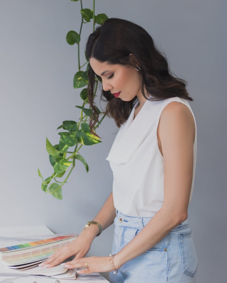 ✓ Definiremos: paleta de cores, pintura, móveis soltos, adornos em geral