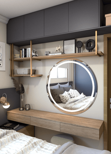Aqui eu auxilio a definir o layout mais confortável, e também na escolha dos móveis soltos, revestimentos das paredes, cortinas...